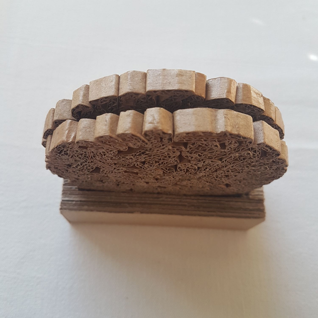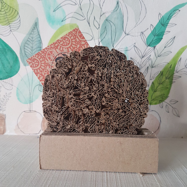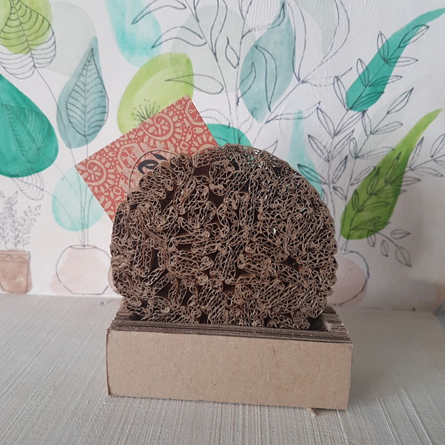 Porte carte de visite composé de 2 disques en dentelle de carton et d'un socle en carton contre-collé
